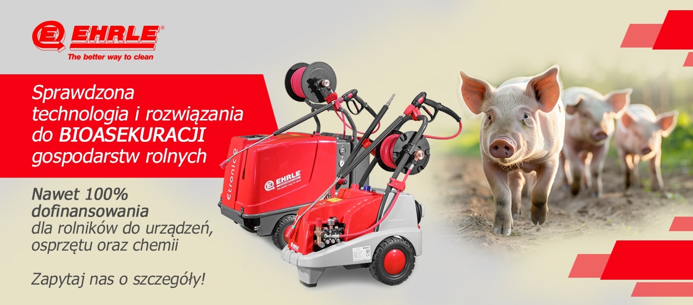 19 czerwca 2024 roku, Ministerstwo Rolnictwa i Rozwoju Wsi ogłosiło możliwość ubiegania się przez hodowców świń o pomoc de minimis na bioasekurację, w okresie od 3 lipca do 25 sierpnia 2024 roku. Dofinansowanie obejmuje m.in. zakup myjek ciśnieniowych Ehrle, niezbędnych dla higieny i bezpieczeństwa w gospodarstwach rolnych.