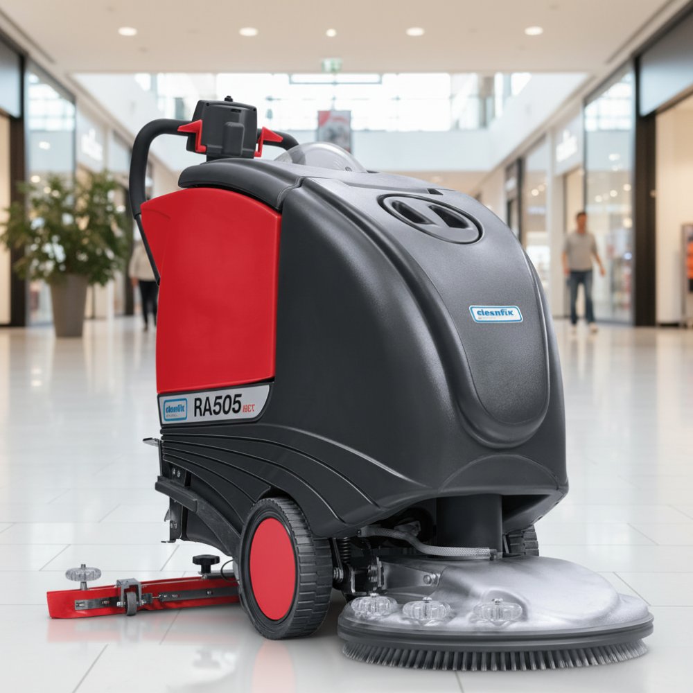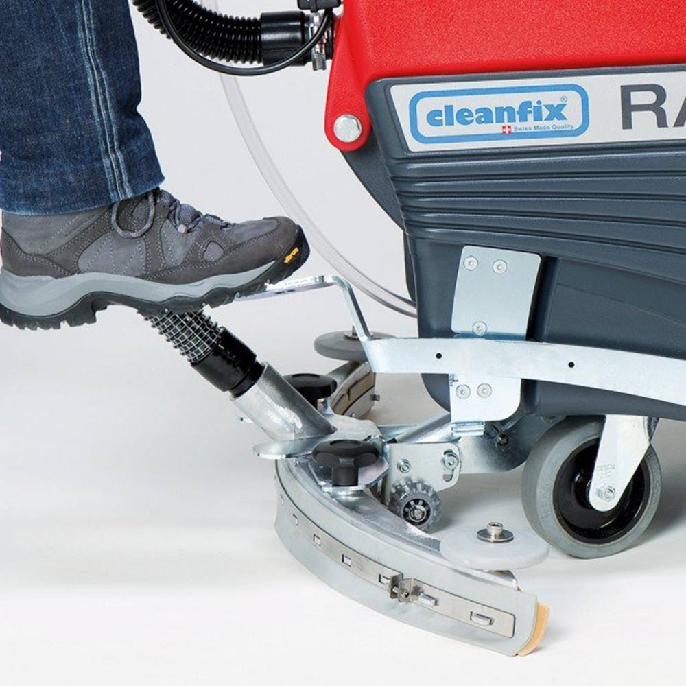 Cleanfix RA 505 IBC to profesjonalna maszyna czyszcząca do mycia podłóg, zaprojektowana z myślą o maksymalnej wydajności i niezawodności na średnich i dużych powierzchniach. Ten szwajcarskiej produkcji automat szorująco-zbierający łączy w sobie dużą moc, przemyślaną konstrukcję i kluczowe funkcje, które usprawniają codzienne zadania związane z utrzymaniem czystości. Dzięki wbudowanej ładowarce (system IBC) i optymalnemu wyważeniu, urządzenie oferuje dużą mobilność i skuteczność, stając się niezawodnym partnerem dla firm sprzątających, obiektów przemysłowych, hoteli czy placówek edukacyjnych.