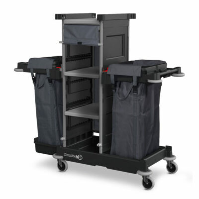 Wytrzymałą konstrukcję wózka zawdzięczamy metalowemu ocynkowanemu stelażowi z powłoką poliuretanową. Wózek dzięki 100 mm kółkom z odbojnikami jest wygodny do przemieszania. W wyposażeniu znajduje się worek 200L.