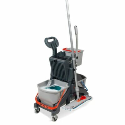 Profesjonalny wózek do sprzątania marki TTS, zaprojektowany z myślą o wygodzie i skuteczności w utrzymaniu czystości w dużych obiektach. Wyposażony w dwa wiadra o pojemności 25 litrów każde, umożliwia efektywne oddzielenie wody czystej od brudnej.