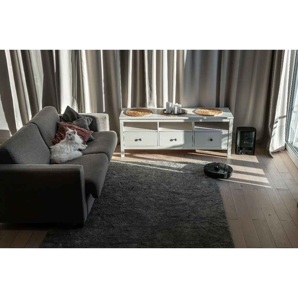Dzięki baterii o pojemności 5200 mAh, robot może pracować w trybie ECO przez 175 minut bez przerwy, sprzątając duże powierzchnie, w tym dywany i twarde podłogi. Mimo potężnej baterii, czas ładowania wynosi około 5 godzin, co jest zbliżone do robotów z mniejszymi akumulatorami.