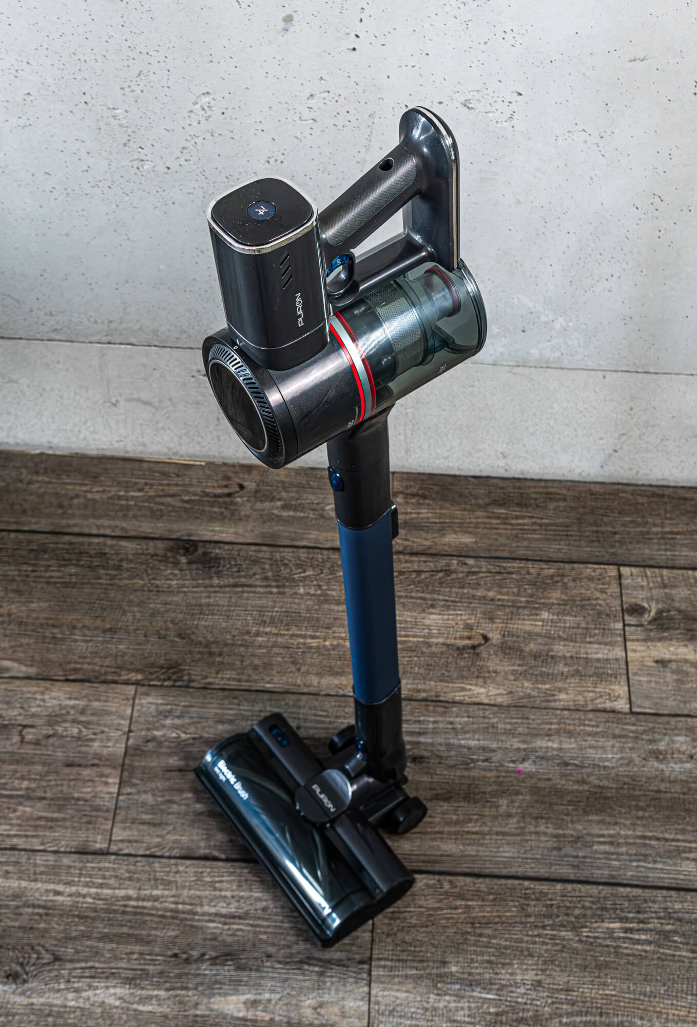 Dodatkową zaletą nowego modelu jest praktyczny zaczep, który pozwala na pionowe postawienie odkurzacza w dowolnym miejscu. Dzięki temu podczas sprzątania nie musisz opierać urządzenia o ścianę czy montować dodatkowych uchwytów.
