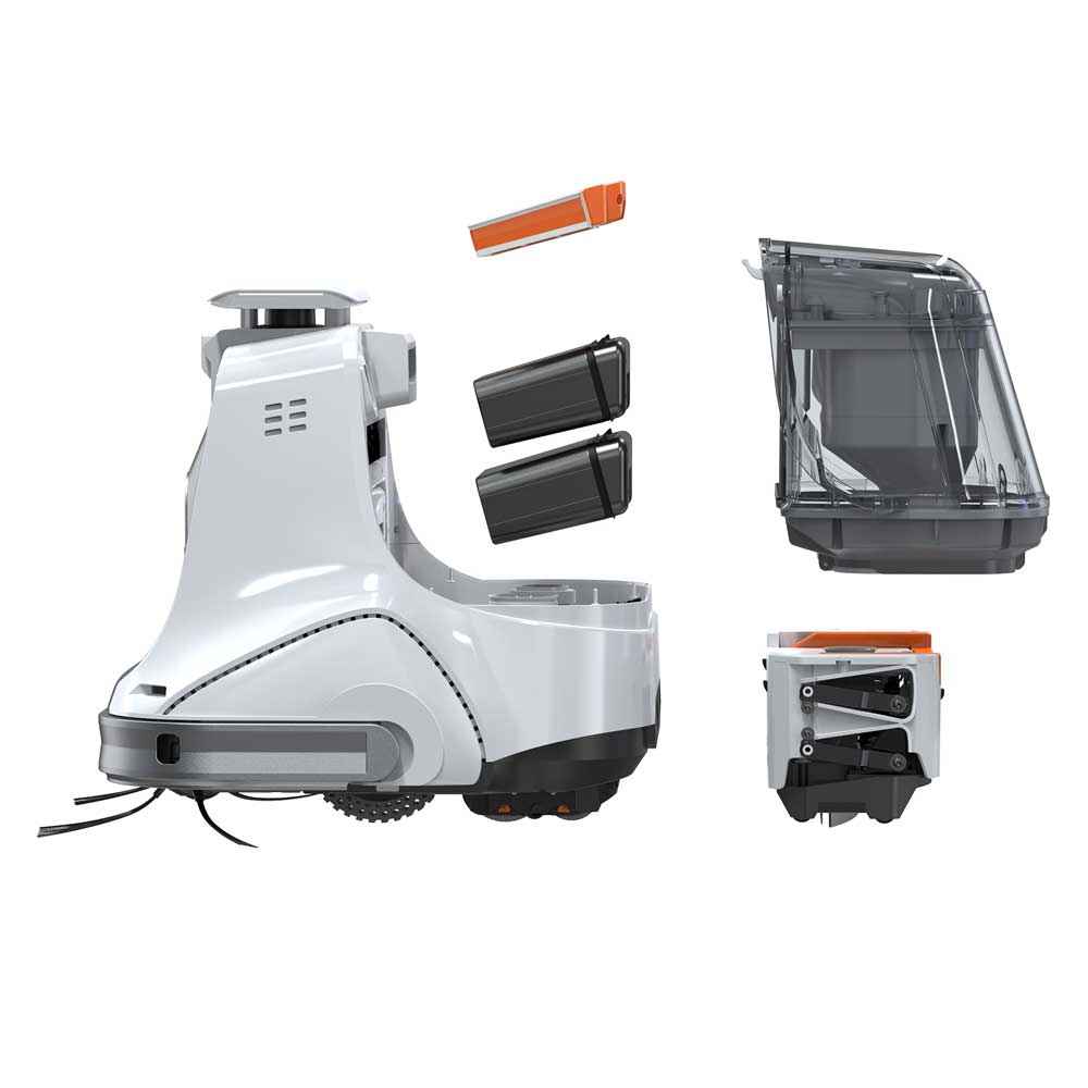 Robot ZACO X1000 posiada dwie wymienne baterie, z których każda może pracować niezależnie. Sumaryczny max. czas pracy to 360 min. To wystarczająco, by w jednym cyklu sprzątnąć obszar do 1000 m².